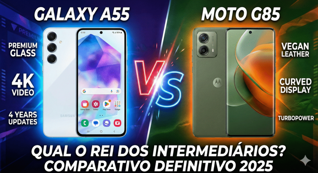 Celulares, Guia de ComprasComparativo Definitivo: Samsung Galaxy A55 vs. Motorola Moto G85 – Qual o Rei dos Intermediários em 2025?